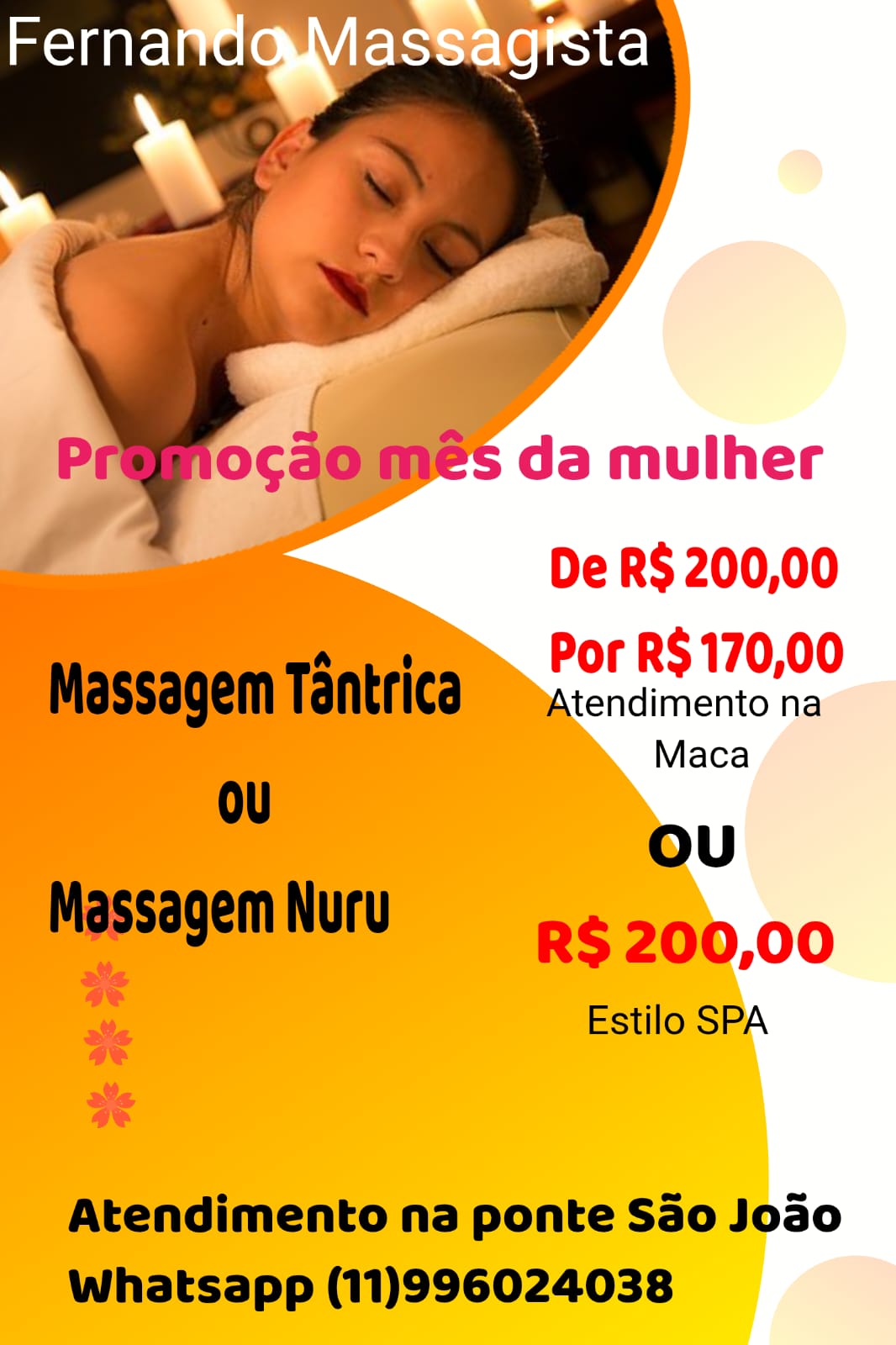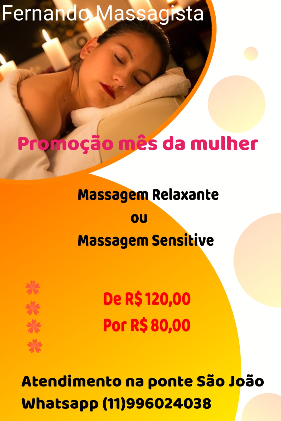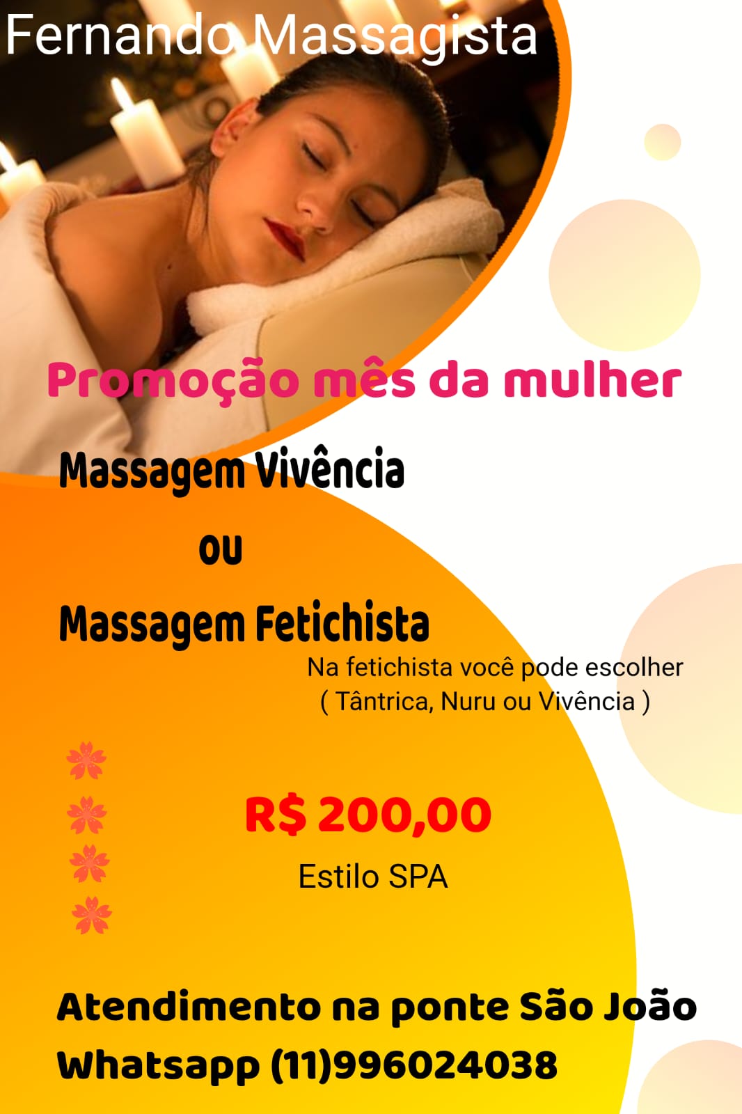 | Descricao: | Sou massagista a 7 anos, sou profissional atendo na Ponte São João |
